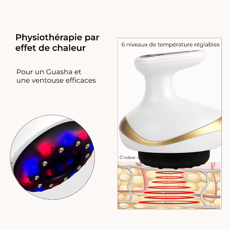 L'Appareil Guasha Électrique réinvente la technique millénaire chinoise en y ajoutant des technologies modernes pour des résultats 5x plus efficaces. Sa tête vibrante et chauffante agit comme un scalpel pour déstocker naturellement les adiposités. La radiofréquence raffermit en même temps lissant les peau, drainant les toxines et offrant un effet liftant instantané – sans douleur ni temps de récupération. Plus qu'un massage, la révolution qui redessine vos jambes et vos fesses.